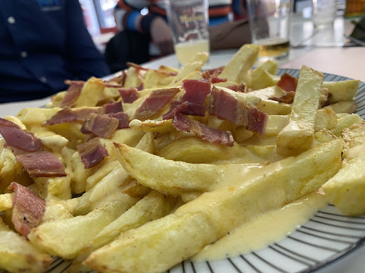 Pedimos unas patatas cheese bacon, y fue toda una sorpresa descubrir que las patatas son caseras. Muy bien de precio, y con buenos ingredientes. Nos sobró un poco el papel tipo periódico que está debajo, puesto que conforme pasa el tiempo de deshace un poco, pero lo que es el plato un 10 también. La próxima vez que vayamos tendremos que hacer un esfuerzo para no volverlas a pedir, ya que nos gustaría probar toda la carta.