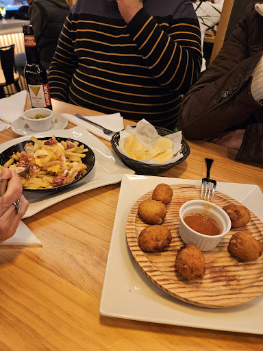 Pasamos por Torrejon para conocer las Blancas Navidades, paramos aquí para un tentempié, sorpresa cuando anuncian "croquetas caseras" y de casera tiene lo que yo de cura, todas mismos tamaño, bien formadas y sabiendo a las típicas croquetas de bolsa que se compra en tienda (en mi casa no entran croquetas así)