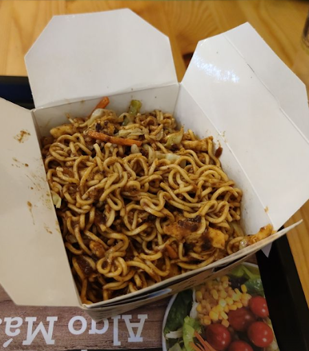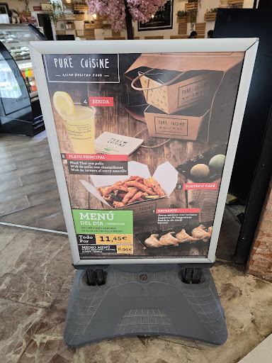 De entrada es más grande. Lo primero que notamos es que la chica que nos debe tomar nota está trabajando mientras tu haces cola, yo recomendaría tomar nota y cobrar al cliente y después hacer otras tareas, igual falta otra persona. Al recoger la comida notamos que las raciones son más pequeñas, que no viene marcado cuál es el phad Tai picante (uno de cada) y que de la bandeja casi se nos caen las bebidas porque está abombada, al pedir que nos cambien la bandeja la dependienta nos dice que no pasa nada, que solo es para llevar la comida a la mesa. Cuando vuelvo para preguntar cómo distinguir cuál es el picante aparece una chica con un pedido para llevar... Vuelve porque le falta una cosa, y efectivamente, allí estaba esperando... Un error más.