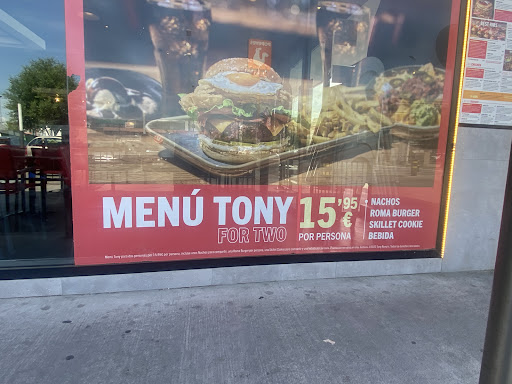 En el día de hoy hemos ido a comer después de mucho tiempo. Decepcionante experiencia a la par de sorprendente siendo una cadena de este tipo. Venimos a comer llamados por el gran cartel que exponen de menú roma por 9,95 en la fachada. Siendo miércoles 21 a las 15h entramos a comer y pedimos esta promoción. Por otro lado, nos llama la atención otra promoción que tienen en la cristalera (adjunto imágenes de ambas). Cuando pedimos la promoción de 9,95 nos dice la camarera que no está disponible. Le pedimos que venga la encargada y ésta nos indica que no nos la pueden hacer porque está habiendo algún tipo de reestructuración en la empresa… le decimos que entonces quiten el cartel dado que esto sería publicidad engañosa y se niega y dice que no tiene por qué hacerlo y que será publicidad engañosa porque lo digamos nosotros tal cual. Le pedimos que traiga una hoja de reclamación y pedimos el único menú que nos facilita. Cuando trae la hoja de reclamaciones nos la devuelve sin sello y sin firma y también con los datos de la empresa sin cumplimentar y sin dirección del local. Cuando le pedimos que por favor rellene los datos de la empresa, pone el sello de una empresa con otro nombre y con otra dirección y se niega a firmar la hoja. Nos dice que no nos la va a firmar y que no está obligada y mientras tanto nos pide que le demos nosotros los platos de la mesa con mucha prepotencia (ha faltado que se los llevemos a la cocina también nosotros). Hemos tenido que esperar a que venga la policía local y le requiera hacerlo para que firme la hoja y la termine de rellenar. Alucinante cómo la responsable un local de este tipo se puede negar a algo tan básico como gestionar una hoja de reclamaciones de la manera correcta. En el sello que ha puesto no aparece ni el nombre Tony Romas ni la dirección y cuando hemos buscado en internet aparece que esa dirección pertenece a Carls… por supuesto la gestionaremos con consumo y pediremos a la policía local que levante acta de la situación y por supuesto no volveremos. Claro ejemplo de publicidad engañosa....