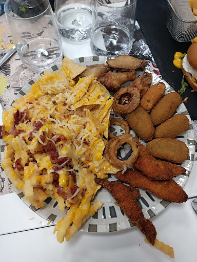Read moreComimos 4 personas, hamburguesas y sándwiches y unos aros de cebolla como entrantes. Los platos los sirven con patatas fritas y tienen una carta para todos los gustos, muchos platos y variados, siempre pensando que estamos en una hamburguesería. El decorado, los detalles como la carta o los salvamanteles, todo bastante bien, la verdad. Voy a poner la pega en la calidad de la comida, o en su elaboración, no lo puedo asegurar con certeza. Es abundante y la idea es buena, pero la hamburguesa que yo pedí no estaba buena. No sé si la carne estaba muy hecha, o estaba re-cocinada, o era de mala calidad, pero estaba muy seca e insípida, aparte de muy hecha. Una lástima. El pan no estaba tostado por dentro y contrastaba que estaba muy frío, un buen pan, mal servido. Definitivamente creo que estaba mal cocinado. Ojalá esta crítica sirva para que mejoren la elaboración porque el sitio me gustó. Por último, deben darle una vuelta al pan que utilizan para los sándwiches. Es demasiado basto. Uno acaba...
