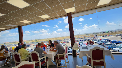 Abajo se puede comer de bocadillo, raciones o menú del día. Y esa es la opción de los empleados, los que llevan prisa o están de paso. Nosotros hemos ido al comedor que está presidido por una gran barra frente a un ventanal que, de lado a lado del comedor, ofrece vistas espectaculares de la ciudad dormitorio de Parla y de la autovía que va a Toledo. Se nota la mano de los profesionales que han decorado y diseñado el espacio. Luminoso, incómodo para los camareros, con su televisión, su música innecesaria y sus calendarios de pared. Es llamativa también la vitrina-bodega bien provista junto a la barra. Lleno total y pese a todo, el ruido no es excesivo.