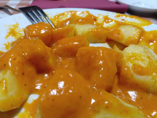 Read moreCOCINA CASERA. La mejor cocina con diferencia de Torrelaguna. Sobresaliente, de alta gama, no da la sensación de que haya precocinados como en la mayoría de los restaurantes para ganar tiempo, aquí parece que esté hecha en el mismo día que la sirven, porque, de hecho, creo que así es. El precio estupendo, el menú del día extraordinario. El desayuno igual, las mejores tostadas, generosas y el mejor café, también sirven dulces y porras. De los dulces dependerá del proveedor en cuanto a variedad y frescura. Las porras (churros de los grandes) son de la churrería de la misma calle, pero los compran temprano y se sirven fríos. Si quieres churros mejor ve a la churrería y que te los sirvan recién hechos. De todos modos es resultón. En definitiva si quieres comer comida de la mejor calidad este, sin duda, es tu sitio. Avisos: el espacio es reducido, a mi gusto roza el agobio, pero es una opinión del todo subjetiva. Si vas con un cochecito lo tendrás complicado, un acceso tiene tres escalones y el otro que no los tiene, tiene una de las dos puertas que no abre bien por lo que tendrás que esforzarte para poder entrar con tu bebé. Además esta entrada tiene un acerado exterior muy estrecho que da a un paso de cebra justo en un cruce donde el tráfico es intenso y la gente no tiene cuidado. Mejor bajar por la puerta de los tres escalones. Hay una zona muy pintoresca para comer en el sótano que son "las cuevas" pero nunca lo he visto. Sólo fotos. En Google se pueden ver. Lo peor, sin ser malo, la atención se basa en un trato meramente correcto y un servicio eficaz pero, a mí parecer, frío y distante. Echo de menos un camarero que sea más cercano y que empatice...