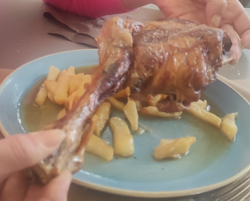Read morePor la hora de llegada (14:30) y no tener mesa reservada, estuvimos esperando bastante tiempo a que nos asignaran mesa (entendible al no tener reserva, estando los comedores llenos, y aún así nos tomaron nota para la espera, gesto de agradecer). Una vez en la mesa (15:15, más o menos), la atención fue relativamente rápida. En relación a la comida, eso ya es otro cantar. Los fritos variados que pedimos de entrante, salvo las rabas, no sé, pero a parte de parecer congelados, demasiado sabor a fritanga. Será por el aceite que ya llevaba muchas frituras. Un comensal se pidió un lechazo asado, le sirvieron un pata, pero muy bajo de sal, un tanto seco y sin el sabor característico del lechazo, sin el jugo que éste suelta. Otro pidió un cachopo, y lo mismo que ocurrió con los fritos de entrante, sabía demasiado a fritanga, supongo del aceite ya cansada de tantas frituras. La presentación del cachopo, bueno, bastante que desear, ahí arrugado y chamuscado. Se salvó el entrecot que se pidió el otro comensal, según ella muy correcto, en su punto y con sabor a ahumado (parrilla). Conclusión?, pues no sabría que decir, el lugar la verdad es que está bastante bien y el servicio es correcto, quizás si hubiésemos llegado a comer a otra hora la comida habría estado mejor, pero si tengo que basarme en la experiencia culinaria de ese día, no repetiría. En cuanto al precio, me supongo que andará en la media de los...