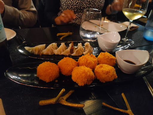 Gyoza por cuenta de la casa Un poco de shushi variado Panko maki Cebiche Tiradito Taco nuta (pulpo) Maki acebichado