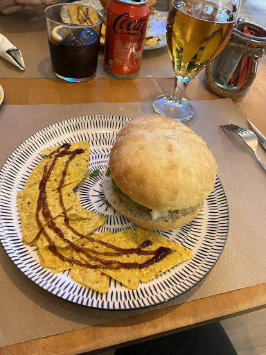 Read moreSinceramente, me disgustó un poco. El cheddar de los nachos era de pote y todos coincidimos en que se pasaron en exceso con la cantidad. La hamburguesa no era nada del otro mundo... la noté sosa, seca y bastante sencillita (a penas podía saborear el queso de cabra, la carne o la cebolla caramelizada). No sé, no estaba mala, pero tampoco repetiría. Y, por último, tanto la cantidad de bravas como la de patatas que acompañaban a la hamburguesa me pareció bastante reducida. Eso sí, el local era muy acogedor y los camareros muy amables, aunque tardaron bastante en tomarnos nota y traernos los platos...