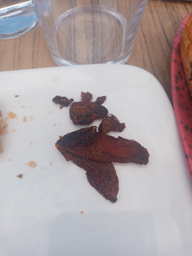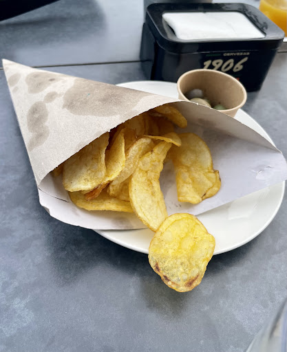 Read moreComida desastrosa y decepcionante. Mesa para 4 adultos y una niña. Empezamos bien porque había mucho aire y pedimos cambiarnos de mesa y no tuvieron problema. Pero a partir de ahí fue de mal en peor. Les faltaban varios platos de los que pedimos de la carta. Los torreznos no son torreznos, además estaban gomosos y costaba masticarlos. Los bao insulsos y faltaba relleno o algún ingrediente más, salsa muy prescindible. No fueron capaces de hacer una ración extra de patatas fritas para la niña, no sabían cómo cobrarla aparte... Aunque menos mal, porque las patatas fritas que acompañan la hamburguesa es imposible hacerlas peor, algunas grasientas y blandas y otras quemadas (pongo foto). Ni nuestra hija quiso comérselas. Pedimos además ketchup y un par de bebidas cuando nos trajeron las hamburguesas, después de un rato esperando no nos lo habían traido, ya habíamos terminado casi cuando vinieron a preguntar si faltaba algo, y ya habíamos terminado cuando nos trajeron el ketchup. No nos atrevimos ni a quedarnos a comer el postre, nos fuimos a la pastelería de al lado. En la mesa de detrás también estuvieron esperando un buen rato una botella de vino, y cuando la reclamaron la respuesta de la camarera fue "es que no hay nada apuntado". En fin, nuestros acompañantes no era la primera vez que iban y su experiencia es que ha ido a peor. No volveremos ninguno depués del servicio y la mala comida, por muy buenas vistas que tengáis hay...