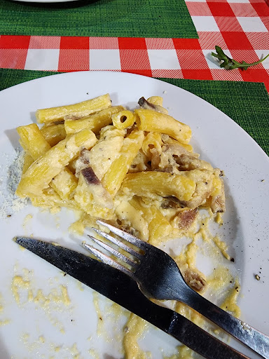 On to the main course and don't look back I thought. I normally don't order a pasta carbonara in most restaurants as its done with bacon and and cream most of the time and a wrong cheese is used. It's become pretty common, so I normally just avoid it and make it myself. When looking at the menu, I noticed it was done in the real roman way. Eggs, Pecorino Romano, Guancale and Black Pepper. When the course arrived I realised I was blindsided by the "pasta" carbonara title. It might have been in the description (not sure now), but the pasta you are supposed to use with Carbonara traditionally is spaghetti, this was served with penne. Some people ask for penne, but it's not traditional. The pasta was a bit too al dente to my taste, but I suppose that is a preference. The thing I really didn't like was the undercooked guancale and lumpy and tasteless sauce. Using pecorino Romano should give it a stronger taste, but my guess is there wasn't enough used. The food experience was bad in my opinion, but hey, I booked through the Fork app and that automatically gave me a 30% discount, so I thought I could not complain to much.