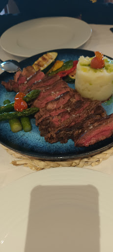 We shared the Gambas Pil Pil to get us going. My wife then had the Steak and I had the Salmon with pistachio's. We were too full to have dessert but the food we did have was...