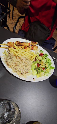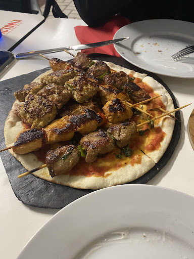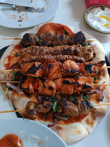 Mixed Grill was presented on Pizza Dough beautifully garnished with Onions mixed with Parsley and Sumak. The skewers were a magnificent and very tasty large chunks of both Tender and very well Marinated Grilled Meat & Chicken.