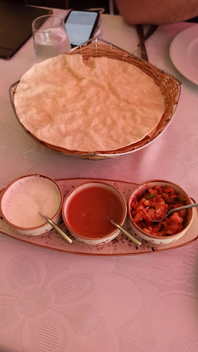 Amazing place with super cheap prices. Quality is 10/10. I personally love it. Fit both - carnivores and vegetarian/vegan. We were sitting inside, so it was not much light going in, so pictures are kind of dark. 1 - compliment from the restaurant, their chickpea bread + sauces. 2 - their mango-yogurt drink, mango lassi, if I remember right, super good! 3 - deep fried king prawns in chickpea flour. 4 - vegetarian vegetable snack. 5 - chicken masala, suuuper soft, not spicy at all. 6 - fried chickpeas with tomatoes and onions, chickpeas are soft, everything on point, you can choose any main dish to be super spicy or soft spicy. 7 - tomato sauce, so good, soft and nice, would eat it just with bread. 8 - lamb chops from tandoori, a lot of aromatic spices, but good, my couple enjoyed it. 9 - you can use anything as a side dish, but we chose classic rice. Rice was soft. 10 - mango icecream, but it is not icecream in a "normal" way) Indian recipe, I liked, but for some might be too sweet. Staff is just great, always trying to make you comfortable, confirming taste and rating of food, bringing everything fast. Our new favourite place, will visit for...