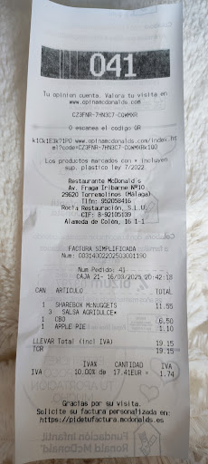 Read moreNo entiendo porqué sale el pack de 6 nuggets a 0,58 la pieza y el de 9 nuggets 0,60 la pieza. Los Mc Pops fui a comprar y me sirvieron los del dia anterior, deben ser del dia, si no, están malos y duros, no deben sacar productos viejos, 9 Mc Pops a la basura y no pienso comprar nunca más ya que no me voy a arriesgar a tener que volver a tirar producto 🤬. Se les olvida poner cosas que pediste, eso si, no se les olvida cobrarlas, en especial si pasas por el drive thru, siempre hay que parar en un lado y revisar bien, porque obvio en ventanita en cuanto te sueltan la bolsa quieren que te quites.... Las hamburguesas mal hechas, poca lechuga, mal colocadas, la mitad de los ingredientes fuera, una pinta poco apetecible al abrir la caja, muchas veces patatas tiesas y frias, deja mucho que desear. La mania además de Mc Donalds en general de echar picante en nuggets y hamburguesas de pollo algunas veces la boca arde, no muy apreciado por los niños y personalmente odio el picante, si alguien quiere picante que le den un sobre de tabasco y que se lo eche por encima, eso ya hace de por sí que yo coma menos en sus establecimientos, sumale que si compras menu para pillar el regalo si no tienes app no puedes acceder al "regalo" un tema que me parece discriminatorio total, no quiero llevar 50.000 apps en mi móvil que ocupan espacio. Un día simplemente dejaré de ir a Mc Donalds por todas esas cosas. No va a haber más veces en su establecimiento, me pilla más cerca su establecimiento pero prefiero ir a otro que me pille más lejos de casa ya que el suyo es el peor de...