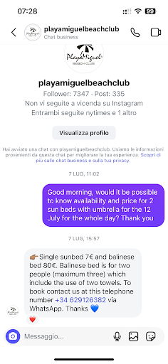Read moreSooo....have been to Play Miguel quite regularly. Really like the place. The staff are friendly and the service is usually great. On this occasion we did not have a bed booked....as it is the 07 august we were pessimistic about getting a bed but arrived at 10.30 hoping that there would be some free. We were told that there were 2. These were the ones right by the bar. I asked are any of the other beds free. We were told No. Ok, we will take one by the bar.....about 20 mins later we see the owner/ manager walk down with a couple and 2x kids. He asked, 2 big or small beds....meaning the small are the sun loungers....the man replied big. The lady who told is that there were no beds free shows the couple and kids to a bed where we had asked was available. NOT ok.....we didnt challenge why this happend as i thought the answer would have been that they had a cancelation and really Did not want any agro or cause a fuss ....i rarley let bad reviews but as this litterly carried out in front of me i was...