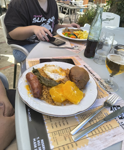 An excellent little place. Loads of parking, welcoming, shady from the sun, very popular with locals (always a good sign). Busy but not noisy when we were there 17th May 2022. Although it was not very clear what the menu of the day was (we could not see anything written) the waiter told us what the choices of dishes were and we all enjoyed our lunch immensely. I went as a group of 30 women for lunch. The starters were Mixed Salad, Potato and Fish Soup, Gazpacho (chilled tomato and cucumber soup) or Boquerones (small fish). When the starters showed up - and it only took a few minutes, we were so impressed at the speed - they were huge! The mains were: Pork Cheek with Mushrooms, Curried Chicken with pineapple - which I had and it was lovely. Or Sausage with a fried egg and chips. There was one other option, but I have forgotten! To be fair there was not a lot on offer if you are vegetarian on the menu del dia. You would have to opt for a la carte where they had Sliced Fried Aubergines with Cane Honey or a salad without fish or meat, perhaps. But I was very happy with my menu choice. The thing that surprised me most was that included in my ten euro lunch was 'a drink' - by that I imagined it was one small mineral water, for example - however it turned out to be a 1 litre chilled bottle of water and that was 'my drink' - wow! I was able to share it with some of my friends at my table. Those that had ordered a glass of wine were happy to see it was included as 'a drink'. The desserts were very nice, and included. You could have a dessert or a coffee. Rice Pudding, Creme Caramel, an ice cream cornet, a set custard 'Natillas' or a piece of fruit. The place was spacious, the toilets were clean and had toilet paper in them(!!!) and the setting is very much like a traditional farmhouse and pretty. I will...