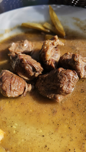 Read moreLlegamos por casualidad y nos ha encantado. Pedimos albóndigas en salsa de almendra y carrillada, muy rica, se deshace en la boca y la salsa es deliciosa, ambas vienen con patatas fritas. Te ponen tú cestita de pan, con un panecillo por persona, que viene envuelto en plástico. Nos sentamos fuera y hacía solecito, luego pusieron el toldo y aún así se estaba bien. La mujer del pelo corto, majísima, nos ha servido ella toda la comida. Hemos visto que hacían un arroz caldoso con pescado y marisco, que tenía super buena pinta también. Venimos de Mallorca y seguro que volveremos a por esa carrillada. Y el precio muy bien. Hemos comido dos personas con café, agua grande y un nestea...