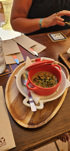 El menú ofrece una variedad de platos bien elaborados, con ingredientes frescos y presentaciones cuidadas. Destacan especialmente [mencionar algún plato si lo tienes en mente], que sorprende por su sabor y calidad. La carta de bebidas también es un punto fuerte, con cócteles bien preparados y una selección de vinos y cervezas que complementan cualquier elección gastronómica.