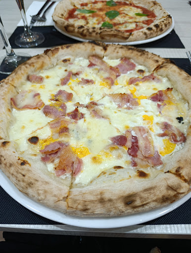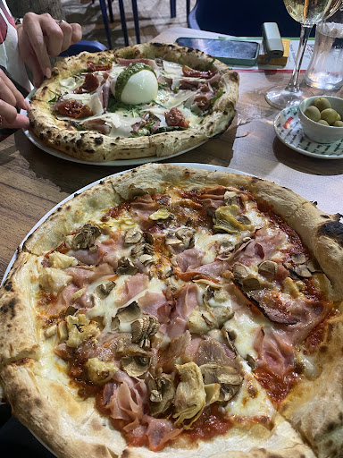 La comida ha sido una muy buena experiencia, las patatas trufadas una auténtica maravilla, había visto en otras reseñas las opiniones sobre este plato y he decir que coincido plenamente 👍 y las pizzas que pedimos (éramos 4 amigas) simplemente increíbles y sabrosas, añadir que las radler que pidieron mis amigas estaban deliciosas, yo pedí vino blanco semidulce que me recomendó la camarera que nos atendió y he de decir que tenía razón, dulce, afrutado y con un exquisito aroma, me encantó 🤩 lo único que no me gustó mucho fue la ambientación del local, que aunque estaba impecable, quizás esperaba algo más cálido y acogedor haciendo honor al nombre del establecimiento, error mío supongo, pero aparte de estas cosas más insignificantes, la experiencia de la comida y atención al cliente para mí y mis amigas fue de 10/10, esperamos repetir pronto, muchas gracias por su atención y por la comida maravillosa. Nota: se nos olvidó hacer fotos de las otras pizzas y de las patatas 😞 lo siento, sólo está la foto de mi...