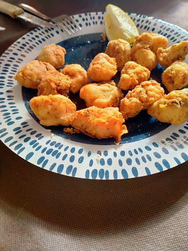 Read moreBueno, la experiencia fue regulera. Eramos trece personas y conseguimos acoplarnos nosotros mismos uniendo mesas. Mesas que aunque recogidas estaban sin limpiar, por ella, a juzgar por las vista y el olfato se habían comido gambas. Tardaron más de media hora en atendernos, normal, si tienes una terraza de quince mesas, por lo menos y nada más que una persona sirviendo y el jefe cocinando y poniendo las bebidas. Entre jarras de sangría y otros refrescos pedimos una jarra de agua. Nos trajeron dos botellas de un litro. Insistimos en que queríamos agua del grifo y se nos negó. Pedimos un solo vaso y se nos negó también. Le comentamos que no era legal pero, nada. Nos quedamos con la botella. Para ser justos, toda la comida estaba muy, muy buena y el precio...