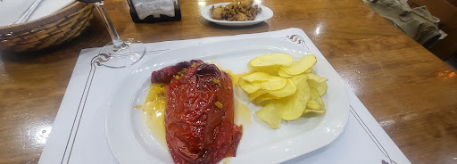 It's a bit out of the beaten path, but worth the visit. They have all sorts of serrano hams hanging from the ceiling, tons of wines and liquors for sale and to order. It's a traditional style Spanish tapas restaurant. There is outdoor seating as well as inside. The bar area has a large selection displaying what tapas are offered, stuffed peppers, lamb, meatballs, fish, shrimp, seafood, vegetables, stuffed eggplant, etc. You can also order from a menu actual dishes like the entrecĂŽte with fries. I had the stuffed pepper, which was huge! Best stuffed pepper I have had in a restaurant..Very flavorful, perfectly seasoned, would order this again. The ambience is very local. I watched as "regulars" come in and don't even have to order, the staff knows what their usual is and are all greated by name. Loves this place, plus it was a block from my hotel making it very convenient. Would I visit again?...