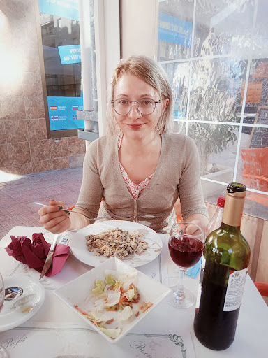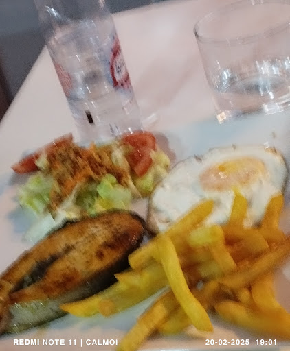 Cinco estrellas de cinco, sin duda, porque no se puede dar más. Platos muy bien cocinados, en su punto. Bebidas del menú del día, como el vino y gaseosa, muy rico también. Una botella de vino entera y llena, para dos. Y sabe muy bien el vino. Camarera muy atenta y detallista. Cantidad y calidad, todo bien servido. Vamos que, sales con el estómago lleno y muy feliz. Menú del día: 1° plato - Revuelto de champiñones: con muchos champiñones. No de esos que te traen huevos caducados y uno o dos champiñones, no; más champiñones que huevos y huevos de calidad también. El primero de mí acompañante, judías pintas que, he probado también, muy, muy buenas también, parece que saben cocinar bien aquí.