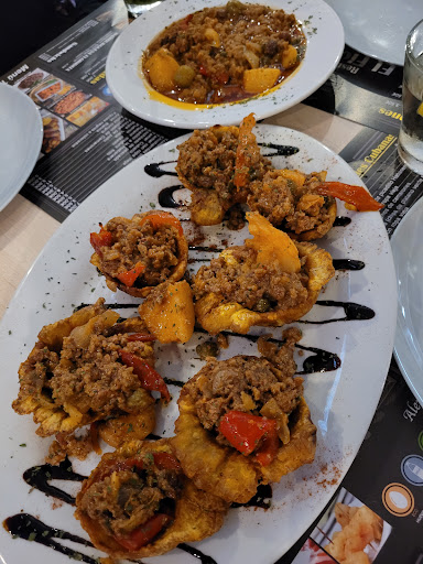 @dinner for a couple: large portions, but what is the point of large portions when we had to leave it behind?! as it was horrible!! we ordered de veal that was served with cubed potatoes and side salad & the grilled chicken with a fried egg on top with fries & side salad. The veal was mostly fat under cooked greasy disgusting fat* very low quality super thin piece of meat. The GRILLED CHICKEN WITH A FRIED EGG ON TOP WAS SERVED UNDERCOOKED I HAD TO SEND IT BK. When it came back and I could actually eat it, it tasted like nothing (no garlic, no seasoning I think they just added salt to it if even that) The side of plantains ( they were definitely fried in cold oil, they sucked in all the oil, they were greasy, saggy & the worst plantains I ever had. The side of cassava chips were ok. I would never eat in this place again not even if they paid me to.