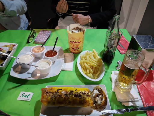 Comida buena y ya. El servicio de la cocina es lentísimo, a última hora, cuando ya las mesas se quedaban libres y no se sentaba nadie más, es decir el volumen de gente no es el de las 9 de la noche, más de 1 hora esperando la comida desde que el camarero nos tomó nota. El pobre chico nos avisó de que iba a tardar, él ya te lo dice porque sabe el follón que tienen dentro y dices bueno espero... Te sirven la bebida en unos 10 minutos y cuando te llega la comida, la bebida ya está caliente y casi que te la has bebido, antes de la comida te traen las patatas fritas, calientes, crujientes... pero sin la comida, así que, las tienes que dejar ahí y unos 15 minutos después llega la comida, así que las patatas están frías, las nuestras fueron de vuelta y pedimos unas recién hechas. La comida está rica y es abundante pero los cocineros deberían saber que un kebab es un sitio de comida rápida y no un restaurante con estrella michelín donde puedes estar 3/4h comiendo, aquí vas a una terraza con 4 camareros, 2 de ellos el chico más corpulento y la chica pasan de ponerse la mascarilla, a pesar de estar entre la gente y tratando con comida y los otros dos chicos, si trabajan muy bien y hacen lo que pueden, servir y aguantar las quejas de los comensales que esperan hora y media por un kebab o durum que se tarda 5 minutos en hacer. Por cierto si alguien lee y puede pensar... Es que serán pocos en la cocina, nada de eso, son 4 tíos trabajando a tope o eso parece desde fuera, así que o lo tienen muy mal gestionado o algo pasa para que tarden una hora en servir un 4 tristes kebab. Otra cosa más, si decides finalmente quedarte a cenar, no te olvides de revisar el ticket con lo que te cobran porque en nuestra larga espera vimos a varios que tuvieron que reclamar fallos en lo que les iban a cobrar.