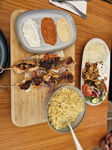 Read moreAfter a stroll along La Mata boardwalk, we dropped in for lunch. We decided upon the sharing platter for 2 as it was our first visit and we didn’t yet have a feel for portion sizes. Out came 4 different but complementary mezes with freshly made bread for dipping. Afterwards came the meat which was beautifully spiced and cooked. We chose fries to go with the meat (husband’s preference) but the Bulgar wheat and rice on other tables looked great.