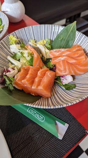 Vinimos a comer sushi... Gran error. Entramos, nos sentamos y nos ponen los menús en la mesa, sólo había unas 8 personas más en todo el restaurante. Nos sirven una CocaCola y una cerveza sin vasos, me levanto a pedir un vaso con hielo (que aunque intenta disimularlo me pone el hielo con la mano). La muchacha que al parecer estaba tomando las comandas desaparece durante una media hora hasta que finalmente hago un gesto con la mano y uno de los otros dos chicos que secaban vasos infinitamente se acerca a tomar mi pedido. Unos 5min después nos llega la ensalada de algas, no estaba del todo mal, excepto por el chirriar de dientes tras comerla. Esperamos alrededor de unos 40min más sin que nadie ni siquiera nos mire, acabamos las bebidas en este tiempo y acabo bebiendo el agua derretida de ese hielo que anteriormente me pusieron con la mano. Después de estos maravillosos 70min esperando en una mesa minúscula rodeada de otras dos minúsculas mesas más, donde oía a la gente allí sentada casi más que a mi novia, decidimos poner fin a esta desastrosa experiencia con una última sorpresa: cuando decimos que ya estamos cansados de esperar y queremos pagar por las bebidas y la ensalada, la señorita que supuestamente tomaba las comandas le dice algo en japonés a los dos chicos que, al parecer, aparte de secar vasos también preparan el sushi y se ríen. No recibimos ninguna justificación por la espera cuando no había ningún otro cliente esperando ni ningún tipo de disculpa, es más, parece que incluso se toma a mal nuestra decisión. Yo soy muy comprensivo con esta clase de trabajo, soy camarero desde hace más de 10 años y sé que se pueden dar muchas situaciones en las cuales una comanda se puede retrasar, pero nunca he notado tal desgana, despreocupacion e indiferencia ante los clientes como en este local. Os recomiendo encarecidamente no visitar este sitio, es nuestra segunda oportunidad y en la primera, aunque no fue tan bestia, el pescado caducó antes de...