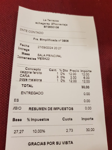 Read moreWe have been a couple of times at La Terraza in 2023 to eat pizza and have some drinks. Sometime we only went there to drink cocktails. Yesterday we wanted some cocktails again so we went there at 22 pm (it closes at 23 pm). Although there still were plenty of free tables and even a lounge area where people usually would not want to eat anything, we were told to leave in case we only wanted to drink. So we left and went to the bar directly next to La Terraza (Los Frutales). There we had a wonderful Piña Colada and a Mojito. We won't come back to La Terraza to eat or...