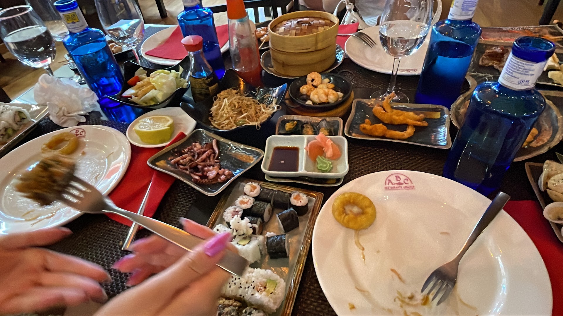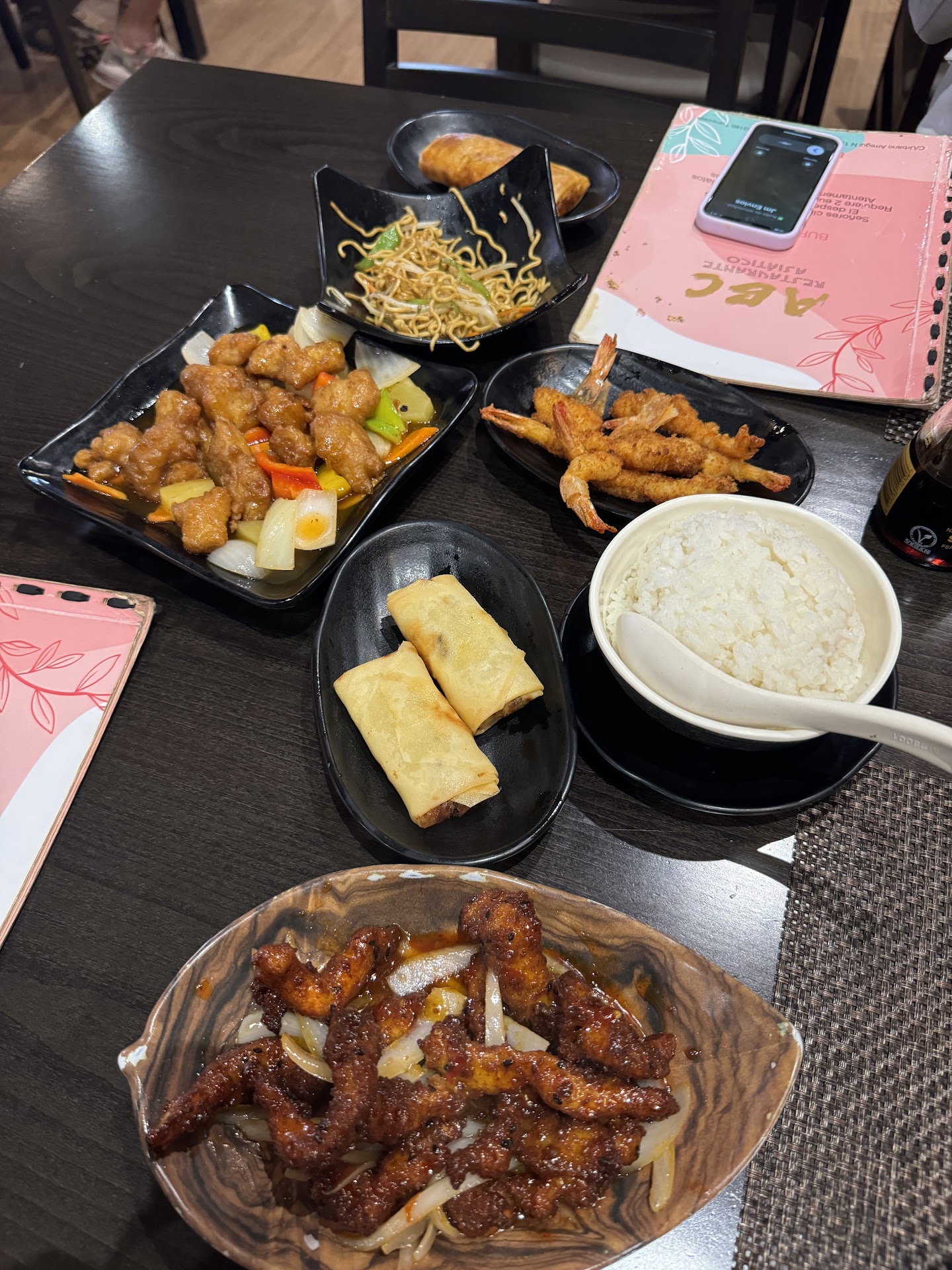 Was recommended by a friend to try this place out. Overall restaurant vibe was cosy however the tables can get quite cramped especially if it's seated for 4 pax. For buffet standards, the quality of food and taste is by far one of the best in Southern Spain (comparison to few other Asian buffets we have been to). At barely €15 per person, there is a wide variety of selection (including sushi) to pick from the all you can eat buffet. I think it's also brilliant that the portions are small so you get to try as many without worrying you'd waste food but space on the table can be rather challenging. Been here twice, the first time we were there at 7pm which was early for Spanish dinner time and service was excellent. Dishes were served hot and rather quick. However during our second visit, we went at 2pm although deemed early for Spanish lunch hours but it was coinciding with the Father's Day weekend. The place was fully packed (thankfully we made reservations) and servers were frantically serving non-stop. As we foresee orders being served late (due to customers in the shop) we decided to order in batches so as we finish, we didn't need to wait for too long. Unfortunately, one of the waitress told us that we shouldn't order "frequent" which left us baffled because we only made a total of 4 rounds of order with approximately an average of 8 dishes each. Right after we were told to not order "frequently", there was an almost 30 mins delay and when the food was served it was cold. Infact, not all our orders came (so we reordered the 5th round for the missing items). Like others, we were there to celebrate the occasion with my father-in-law so you can imagine the frustration when we had to pause for 30 mins amidst eating for the food to arrive. We also asked 3 different waitress to check on our order (between of 10mins interval) but to no success. I would say it's likely the peak hours / traffic that caused this however it was still a disappointing experience. Nonetheless it was overall a satisfactory second visit and perhaps we will not come during peak occasions just to prevent the repetition of same experience. Hope the management also take note on ways to better manage peak hour orders so customers don't leave feeling dissatisfied in future. Couldn't managed to take pictures of all dishes but here are...