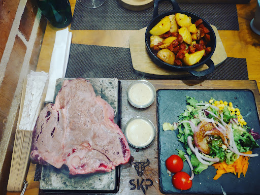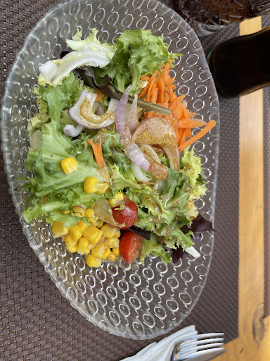 Had the menu del dia (€10.95) which is 3 courses plus a soft drink. It was very busy and we got a table near the entrance to the restaurant. Had the salmon tartar and the house salad for starters, then the half roast chicken and the burger for main, mouse (coffee) and just a coffee for third course. Starter was fine, OH said salmon tartar was good, I had the salad - basically lettuce, some grated carrot, sweetcorn and one cherry tomato. Dressing for it was very good. Having seen other diners gave the kebabs for the main and seeing they are served with just a small salad (looked mostly lettuce), decided to go for the half chicken. OH burger was good (served on a plate). Chicken (1/2) served with chips and on a chopping board. This is one of my hates when serving food. I find them very unhygienic, and had I known would have asked for it to be served on a plate instead. Chicken was very moist. Chips were quite dry. Had to go and get our own condiments as service was a bit of a let down. Even though we were right near the door, and the waiters passed our table multiple times, we felt invisible and had to wave them down to place our order and to pay the bill. The mouse was OK, but couldn’t really taste any coffee. It is definitely good value for money, so we’d probably try them again (most places deserve a second chance), but I would request everything is served on a plate. It would also be nice to see a vegetarian/vegan option on the...