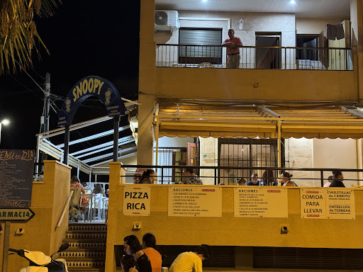 Read moreLlevo varios años que por un motivo u otro no voy, y finalmente me aventure este verano, el nombre hace gracia sin dudarlo... Creo que muchas de las criticas estan sobrevaloradas, Te presentan una carta con muchisimas referencias, algo que rara vez es bueno, Pedimos para dos, una ensalada mixta, unas patatas bravas (que se agradece que te pongan la salsa aparte, aunque estuvieran duchadas en sal) y lo que esperamos que sea una "pizza rica" (segun pone fuera) "snoopy" que ha sido finalmente un masacote de masa recalentada en microondas y que deberia ser la especialidad al llevar tu nombre,, que resulto ser bastante decepcionante la verdad. Supongo que los guiris y alemanes se comen cualquier cosa...
