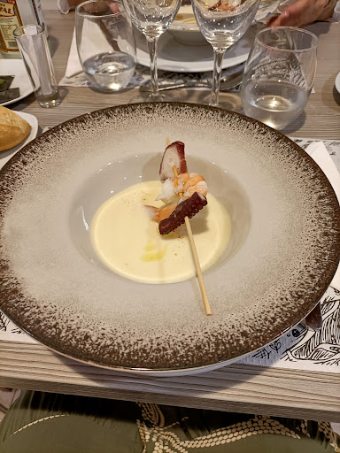 Read moreEra un atípico día caluroso de Marzo, en el que por caprichos del azar, nuestro trabajo nos condujo a este Restaurante. Sorpresa la nuestra cuando al entrar, nos percatarnos de que habíamos entrado por una puerta que nos conducía a la tienda de la gasolina. Pese a esto, una amable chica nos indicó la forma de llegar al Restaurante. Superado este pequeño percance, nos encontramos un Restaurante bellamente decorado y con detalles con referencia histórica, cuanto menos peculiares. Las sillas de madera tintada negra, de cerezo o de pino (no estoy seguro). La mesa del mismo material. Tras esta breve introducción y contextualización procedemos a analizar el menú. Grata sorpresa al descubrir que el menú incorpora un entrante que gozaba de dignidad. Tras esto el menú se componía de primero, segundo, postres y bebidas. La ensalada de primero era una hermosa combinación de ingredientes frescos y vegetales y otros curados y marineros. El segundo elegido se trataba de una dorada a la que aún la sentía nada, gracias a su frescura. Mi acompañante deleitaba una esquisita escalopa de ave (pollo) debidamente rellena de queso y paleta de cerdo (jamón). Todo habría sido una sinfonía de aromas, textura y sabores si no fuera porque el aceite de oliva no era virgen extra. En cuanto al postre y la traca final, nos decantamos por la especialidad de la casa: una especie de pastel (creación propia) que hacía bailar el café con la vainilla. Gracias a la bebida pudimos acercarnos y deleitar la tierra colindante. Agradable sabor el de la fresca, agua mineral. Terminado el manjar, agradecer el detalle de un cortado que nos fue obsequiado por tan amable personal Sin más dilación, concluyo éste pequeño resumen de una buena...