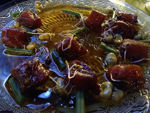 Read moreFantástico lugar, intimista y recogido. Ideal para parejas, o grupo reducido familiar o de amigos. Espacio reducido (hay unas 9 mesas) que permite un servicio de mesa excelso, al ritmo adecuado según la mesa, permitiendo el disfrute de los platos y de una conversación a ritmo. Ofrece carta de menú y menú degustación. Alto nivel de preparación y presentación de los platos con una adecuada presentación de los mismos por parte del "maître". Carta de vinos excelente. Muy recomendable el menú degustación, ya que permite un ritmo ideal de entrega de platos, junto a un adecuado ritmo de consumo y una agradable conversación. Zonas de aparcamiento en el exterior, con zonas habilitadas para minusválidos, acceso para minusválidos, no es un lugar adecuado para disfrutarlo con niños. Es conveniente hacer reserva debido al reducido número de mesas. Muy buen ambiente, con luces muy bien calibradas y una música de fondo que acompaña muy bien. No admiten tarjeta. Situado en zona con amplia oferta...