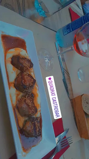 Ayer estuve en Quadrat Gastrobar para comer. Éramos unas doce personas. Habíamos reservado porque son fiestas en Tortosa. Y menos mal que lo hicimos, porque estaba lleno. Es un sitio sencillo. El comedor es, sin ser muy grande, tiene bastante espacio, y se accede desde el bar. Nos ofrecieron el menú, que consta de unos cuatro platos de primeros (a elegir), otros cuatro de segundos (también a elegir), postres (no aparecían en el menú pero la camarera nos los "cantó") y bebida. Entre semana cuesta 14€. Siendo fin de semana nos costó 15€, lo que nos pareció un muy buen precio. Primeros: raviolis de setas al pesto - mejillones en salsa marinera - ensalada con queso de cabra - gazpacho. Segundos: timbal de hamburguesa con queso brie y huevo - sepia rebozada con parmentier de patata - lubina a la plancha con verduras - solomillo de pollo. Postres: tarta de queso - brownie - tarta de almendras - flan de coco. Viendo la oferta gastronómica, el precio nos pareció aun mejor, la verdad. Puedo opinar sobre: 1- los raviolis: muy buenos, con queso parmesano por encima, lo que les daba un toque extra de sabor. 2- la sepia: no tenía mucho misterio. Sepia rebozada sobre parmentier de patata. Me gustó, pero los trozos más pequeños y finos estaban duros. De todas formas, no le quito muchos puntos por eso. 3- timbal de hamburguesa: buenísimo! Cama de patatas, hamburguesa encima, una loncha (de casi un centímetro de ancho que cubría toda la hamburguesa!) y un huevo frito encima del queso. Estaba para repetir! Solo un detalle: la hamburguesa estaba muy hecha (poco jugosa) y el huevo, demasiado hecho también. Tal como estaba, me encantó, pero si la hamburguesa hubiera estado más jugosa y el huevo menos hecho, de modo que, al cortarlo cayera la yema sobre el resto, hubiera estado BRUTAL! La atención, realmente excelente. Camareras atentas, amables, rápidas y eficientes. No tuvimos que esperar demasiado entre plato y plato pese a tener el comedor lleno. Un diez para el servicio. Y, para rematar, chupitos para todos a cuenta de la casa. Una buena experiencia para un día de...