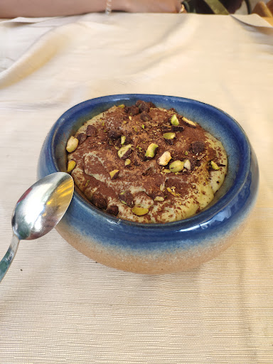 We ordered avocado salad as a starter, then dry black rice paella with scallops and calamari, and for dessert pistacho tiramisu.