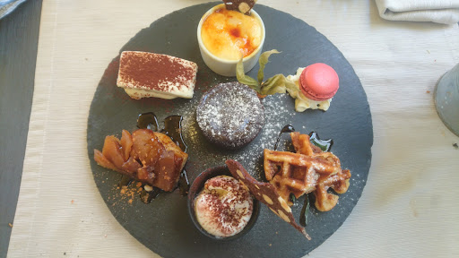 The desserts were abundant, and we couldn’t possible choose just one, so we shared an assortment, including chocolate fondant cake, crema catalana, apple tatin, tiramisu, macaron, vanilla ice cream and waffle.