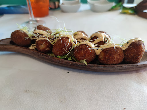 Firstly, our waitress was incredibly lovely, very attentive and very helpful with recommendations! I had the prawn croquetas, and honestly it’s the first croquetas I’ve eaten in Spain where I can taste the intended filling! It was all prawn, it was delicious! My partner had the tuna tartar which he said was amazing, really well seasons! For the main I had fish of the day, and my partner had steak, I know… 🤦♀️ but the fish was phenomenal! They kept it simple. A little butter, salt and pepper which is all it needs, and it was perfect! The desserts were great too, I think we were just so full by that point and it was great to go to a place where they knew how to make a proper coffee, not battery acid...
