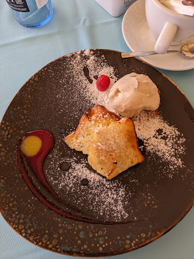 Read morePerfect lunchtime spot for us! After an hour long walk from our campsite, we were more than ready to sit down and relax, so this place, right on the roundabout in front of the beach was well located and had tables under shelter. They have several wines by the glass, and the obligatory selection of tapas, but also tasty sounding mains and desserts. We tried the selection of cheeses, spicy potatoes, cooked vegetables and a cheese and strawberry salad to go with a glass of Cava, followed by a white wine. The food was very good to excellent (the salad was the standout), and the desserts, creme Catalan and caramel French toast with cinnamon ice cream were also excellent. All that and a cup of coffee and tea came to 85€. Very happy with the food, service, atmosphere...