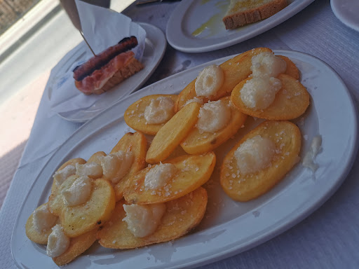Hemos ido 2 personas, pedimos 4 zamburiñas, calamares a la plancha, y solomillo para 2, botella de agua grande y coca cola (el postre y café íbamos a tomarlo en otro sitio). El precio ha sido de 30€, siendo adecuado la relación calidad/precio ya que estaba todo buenísimo, aunque destacaría que no son raciones muy grandes, y según comas puedes quedarte con hambre cuando acabas el plato. Todos los platos muy sabrosos. Los calamares muy tiernos y con su mezcla suave de ajo y perejil. Los solomillos eran finos y se deshacían en la boca, iban acompañados de unas rebanadas de pan tostado con aceite. No habíamos reservado y tuvimos la suerte que quedaba una mesa libre, ya que suele estar concurrido en las horas puntas. La comida salía rápido y de forma progresiva conforme íbamos terminando un plato para continuar con otro. Repetiremos, recomendado probarlo al menos una vez y...