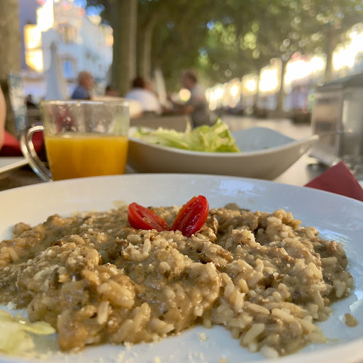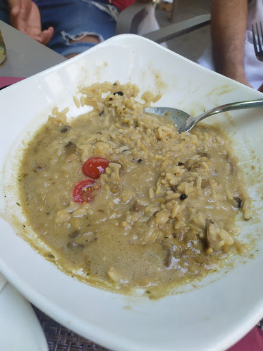 It was very quiet and tranquil on a Saturday sunny day. We’ve ordered a mushroom risotto. It was very balanced with a mild taste. I’ve asked for some extra parmesan cheese, just a personal preference. The green salad with chevre goat cheese was good too. The staff didn’t speak English, and there is no English menu, but as usual, used the google translate from the picture of the menu. A simple and...