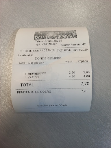 Me cobra por un pincho de tortilla, repito rico, 4.50 como si fuera un bocata, siendo una ración bastante pobre. Pago y pido recibo y sopresa el pincho de tortilla es un "varios"