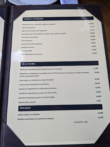Para los segundos, carne Argentina que realmente sorprende por su CALIDAD Y EXCELENTE SABOR. Yo he comido la picanha presentada de forma poco habitual pero con un increíble acierto, capa justa de grasa perfectamente comestible sin necesidad de dejar nada en el plato. La entraña más fibrosa pero por el corte en sí mismo, baja la media general pudiendo ofrecer a la carta cortes más resultones en su lugar teniendo en cuenta la calidad de sabor y madurado que manejan en sus carnes. Bien para menú, regular para carta. El solomillo de buena nota, el bacalao no es la mejor opción y la milanesa un poco justa, no aporta demasiado ni por tamaño ni por el rebozado. Aceptable sin más pero muy muy honesto todo en general.
