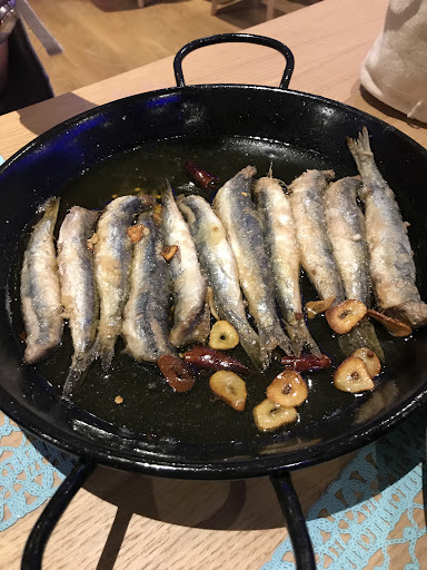 De primeras nos ha dicho de mala gana un camarero que podemos sentarnos en una mesa, tenía menos ganas de trabajar que Pedro Sanchez, han tardado en servirnos un rato, cuando lo han conseguido, se han dado cuenta que unas señoras, que estaban antes que nosotros estaban sin atender, cuando hemos pedido una ración de calamares y una de ensaladilla rusa nos ha dicho que una ración de la ensaladilla era muy grande, que mejor media, en que hora... Después de un buen rato han traído los calamares, sólo eso, sin cubiertos ni servilletas. Al rato largo ya nos han visto y hemos pedidos lo cubiertos, en fin... Casi fríos los calamares han llegado los cubiertos, aprovechamos para pedir otra ronda de cervezas (2 cervezas para ser exactos) que nunca llegarán...