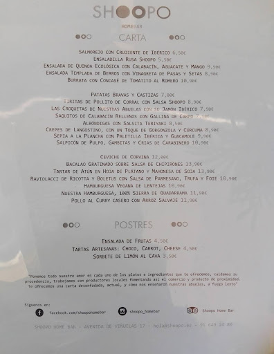 Read morePara asistir a un evento en el Pueblo, mire reseñas y menús en internet y Shoopo me pareció adecuado por lo que reservé para las 14:30h el día 18/04/24 para mí pareja y para mí (2) en invernadero, aunque a petición propia nos cambiaron a terraza,