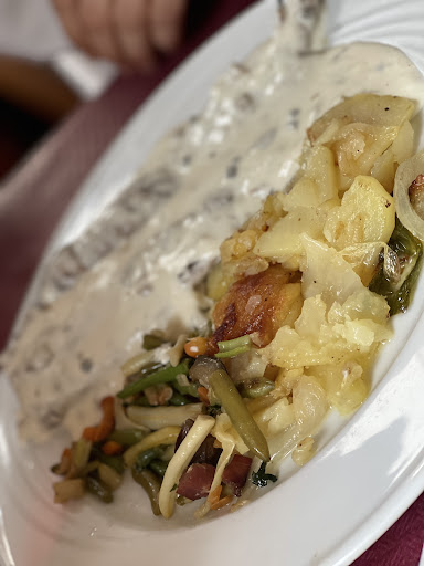 Read moreEl personal es muy amable. Nos atendieron perfectamente a pesar de ser ya las tres y de estar llenos. Después de pedir creo que no elegimos los mejores platos aunque estaban muy buenos, lo único que menos nos gustó fue la ensalada mixta. Ni llevaba huevo duro, ni cebolla ni atún. Al preguntar una vez servida nos dijeron que no llevaba, pregunté si le podían poner al menos cebolla y la pusieron sin ningún problema. Había demasiado lechuga aunque estaba bien presentada por su precio para mi gusto algo de atún y huevo duro la hubieran completado, pero esa es mi apreciación. Pedimos migas que estaban buenísimas y un alpujarreño, ambos para compartir. Ahí vino nuestro error, quizás una carne a la brasa hubiese sido lo más adecuado pues las migas ya venían con chorizo y morcilla. Las patatas a lo pobre del alpujarreño estaban impresionantes. Mención especial a los postres porque aunque pedimos la tarta de la abuela para compartir dudamos ya que todos los postres incluido el helado eran de un buen tamaño y tenían una pinta espectacular. Se nota que el personal de cocina...