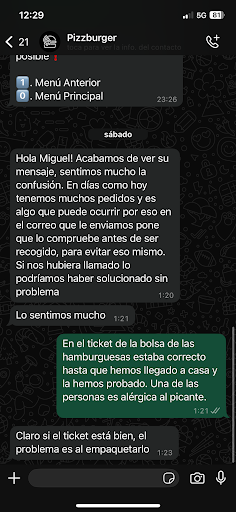 Voy a hacer un pedido para llevar, y me piden que lo haga en la web, que es más rápido. Tras decirles qué quería, me comentan que estaría en media hora, aunque la web diga 45 minutos. Así que hago y pago el pedido, y quedan en llamarme cuando esté.
