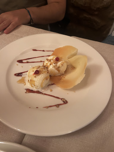 The service was very polite and welcoming, and they also communicated in English, which made us feel comfortable. We decided to skip dessert because we were full, but they still served us a small complimentary treat—a kind of white chocolate mousse with vanilla, topped with sweet almonds. It was delicious.