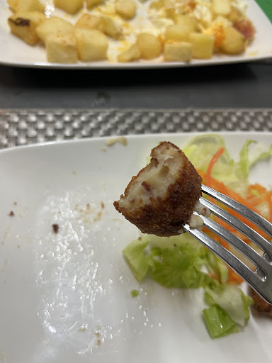 Read moreFuimos a este sitio ya que vinimos a conocer este pueblo. Como españoles hay que decir que la comida que nos pedimos era pésima. En la carta venía que las croquetas eran caseras pero eran literalmente las croquetas eran congeladas del Mercadona, y la verdad que 8€ por una ración de croquetas congeladas no merece la pena. Al menos que no engañen en la carta y que digan que son congeladas y me llego a pedir otra cosa. También nos pedimos unos huevos revueltos con jamón pero las patatas también eran congeladas. Nos hemos gastado unos 20€ en comida congelada, lo llego a saber y me voy a una franquicia de comida rápida ya que al menos me queda clara la calidad que tienen no como aquí. Las bebidas sí que te la servían bastante frías pero no entiendo todas las buenas reseñas cuando el sitio deja...