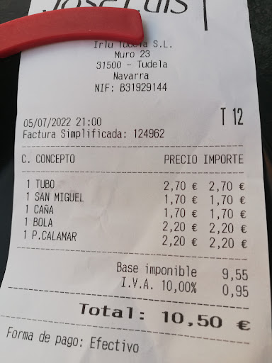 Read moreAl principio el que figure sólo como BAR te "echa para atrás". Luego el que en la hoja del menú no figurara el precio ni el IVA, máxime que fuimos en fin de semana, también "mosqueaba". A partir de ahí, todo bien. Menú de 12 €uros incluido IVA, dos platos estupendos y cumplidisimos ( dos ni tomamos los postres, que estaban incluidos, por estar ahítos), postres variados (no light, 😉), gaseosa y tinto (sin descorchar) sorpresivamente catalán que estaba muy bueno. Y finalmente el trato amable y simpático. Un "pero", no hay pescado en el menú (en la carta no me fijé). El lugar sencillo (dentro de lo bien), amplio y luminoso. Y el mobiliario bien, mesas amplias y sillas cómodas. En conjunto para repetir sin dudar. Por lo que pudimos ver, da sensación que es la tónica general en Tudela. Muy buena comida, en especial las verduras (como no podía ser de otro modo en "la Ribera") que "se van del mundo", y precios...